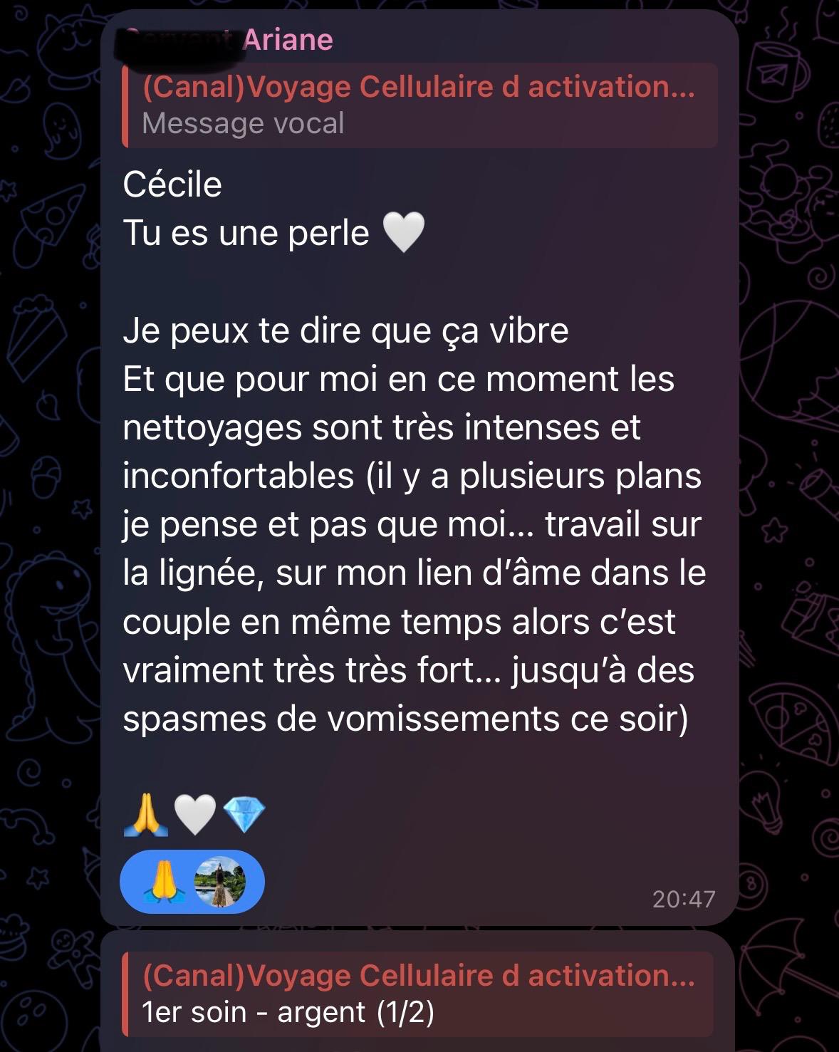 deux activations et soins d'ouverture et de calibration à l'energie de l'argent (et transmutation des freins)